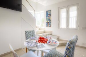 Al secondo piano vi è una camera con divano letto (trasformabile in divano letto matrimoniale o due letti singoli), da qui si accede ad un esclusivo terrazzo, equipaggiato di tavolo e sedie, con vista mare, ideale per i momenti di relax, per un pasto all'aperto o semplicemente per un tea-time.